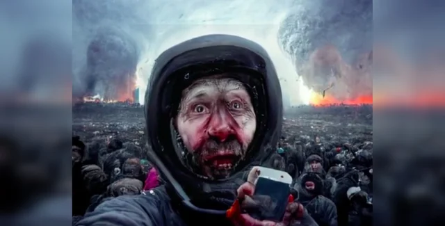 На думку деяких користувачів, таке зображення демонструє наслідки вибуху ядерної бомби, хоча автор облікового запису попросив штучний інтелект показати лише "селфі кінця світу".