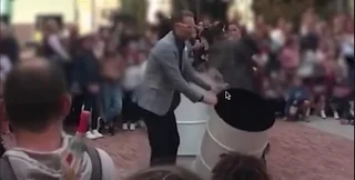 На відео чоловік поміщає невідому субстанцію в діжку, потім ємності ставлять одну на одної. Після нетривалого відліку слідує вибух, і натовп, що зібрався, опиняється у диму.