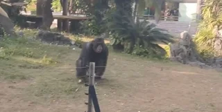 "Пішла із зоопарку в крові": розлючений шимпанзе кинув пляшкою в дівчину з телефоном (відео)