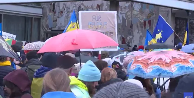 У п'ятницю, 24 лютого, у Берліні декілька десятків людей вийшли на мітинг на підтримку України. Про це повідомляє AFP.