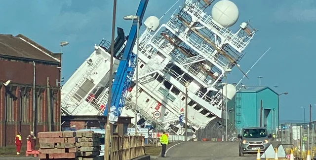 Корабель перекинувся на бік в единбурзькому Імперському доку (Шотландія) 22 березня приблизно о 08:35, що спровокувало серйозну надзвичайну ситуацію. За наявними даними, служби порятунку працюють із численними постраждалими, на місці події було помічено санітарну машину.
