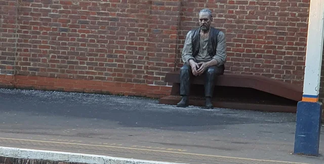 Емма Обан їхала поїздом, що проходить через Вокінг, Суррей, коли помітила покритого снігом чоловіка. Жінка одразу зв'язалася із співробітниками залізничної компанії, які розповіли їй, що це скульптура.