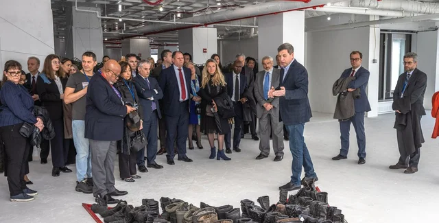 Одним з центральних експонатів виставки стала п'ятикутна зірка, виконана із взуття російських окупантів.