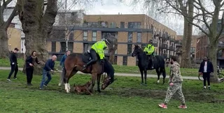 Власник собаки прогулювався зі своїм вихованцем парком і вирішив відпустити його з повідця. Раптом пес напав на коня, який був на службі у кінній поліції у загоні PH Urbane.