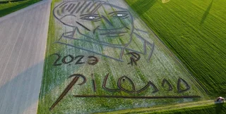 Італієць знайшов трактор і поле у Вероні, площа якого становить 82 тисячі квадратних метрів, щоб створити репродукцію автопортрета Пікассо 1907 року. Тепер цей портрет є найбільшим у світі.