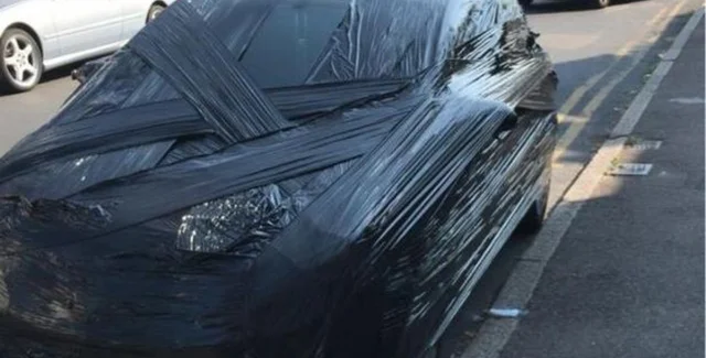Помста за паркування: чоловік повністю обмотав машину сусідки целофаном (фото)