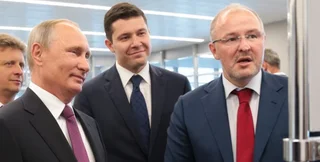 Володимир Путін та Роман Троценко (праворуч) на аеровокзалі в Калінінграді | Фото: ТАСС