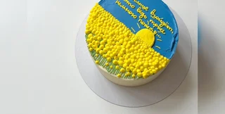 Випускниця престижного московського вишу ВШЕ (Вища школа економіки) зробила торт у тон українського прапора з написами "Кохання та перемога" та "Сонце зійде".
