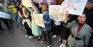 Люди, що зібрались під будівлею МЗС, обіцяють, що російські авіакомпанії, які захочуть відкрити свої офіси в Грузії, зіткнуться з "фізичним опором".