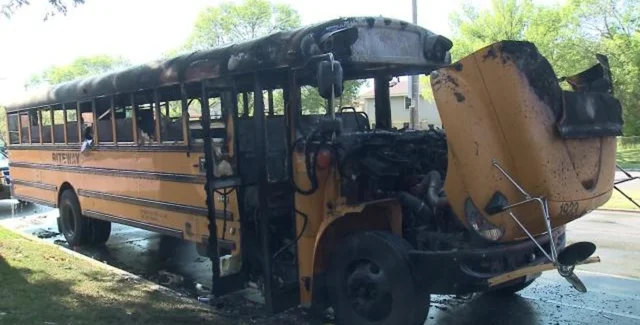 Шкільний автобус був порожнім, коли прибули пожежники, і ніхто не постраждав. Незрозуміло, що спричинило пожежу.