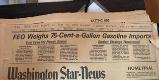 Копія газети Washington Star News вартістю 15 центів повідомляє: "FEO зважує імпорт бензину по 75 центів за галон", попереджаючи читачів про брак постачання. Однак це не було головною темою того дня 1974 року, оскільки перестрілка в аеропорту Балтимор-Вашингтон також потрапила на першу шпальту. Хоча користувачі Reddit оцінили оптимізм Девіда і Гарольда щодо майбутнього, багато хто стверджує, що зараз "гірше, ніж у 70-ті роки".