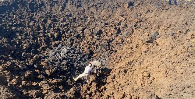 Медіа опублікувало відео, надіслане одним із підписників. На ньому видно клуби чорного диму, що підіймається з-за дахів будинків, а також велику воронку, на дні якої стоїть людина.