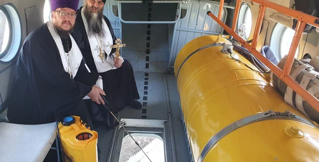 Пішло 100 літрів святої води: у РФ священики освятили район із вертольота (фото)