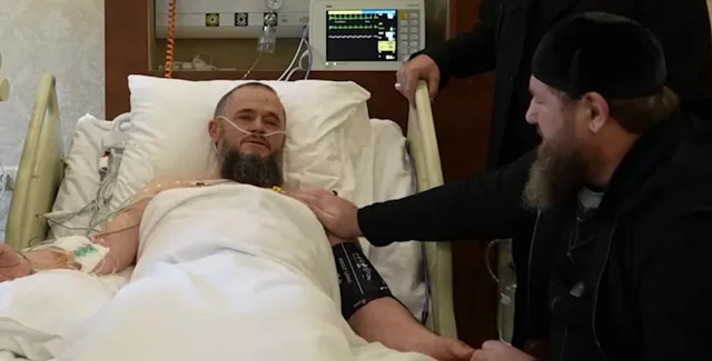 На кадрах із лікарняної палати глава Чечні розмовляє з пацієнтом. У підписі до відео стверджується, що це дядько Кадирова, який наразі перебуває на лікуванні в Москві.