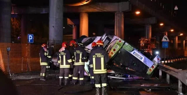 Автобус, який злетів з естакади о 20.00 за місцевим часом 3 вересня, орендували туристи з кемпінгу. На першому ж узвозі автобус пробив парапет, впав на залізничні колії, після чого загорівся. Як пише RaiNews, деякі з перших знайдених жертв, очевидно, згоріли живцем.