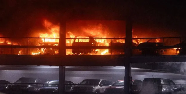 Згідно з очевидцем, який поділився інформацією на сайті X (раніше відомому як Twitter), виявилося, що вся стоянка завалилася, і інший свідок розповів про періодичні вибухи автомобілів на стоянці.