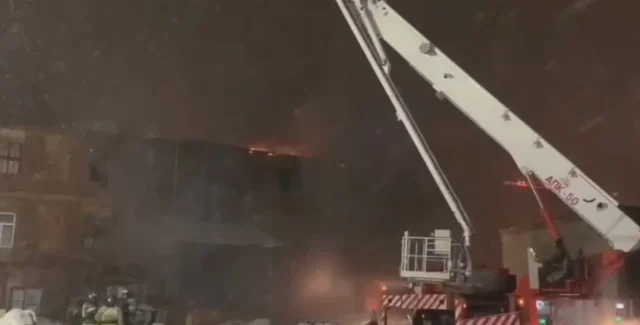 "Роботи ускладнюються високим пожежним навантаженням будівлі. Загалом на місці працюють приблизно 120 фахівців і 36 одиниць техніки", — заявили в МНС Росії.