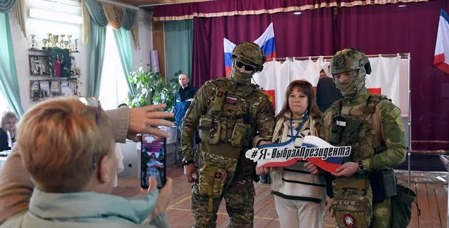 Адже минулого року Путін підписав чотири закони про ратифікацію договорів про прийняття Донецької, Луганської, Запорізької та Херсонської областей до складу Росії. Тож "вибори" проводилися і на цих окупованих територіях. Найчастіше — під дулом автомата. У соцмережах навіть з'явилося відео того, як військовослужбовець ЗС РФ у масці та з автоматом перевіряє, за кого "голосувальники" ставлять галочки.