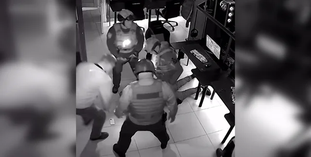 "На кадрах видно, як троє силовиків у касках та бронежилетах і двоє у цивільному забігають, кладуть геймера обличчям униз на підлогу та фіксують на очах у його здивованого сусіда. Той навіть кинув клавіатуру з мишкою і відсунувся якомога далі, щоби не заважати спецоперації", — передали журналісти.