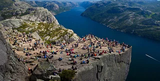 Прекестулен, або Скеля кафедри, з якої відкривається приголомшливий вид на фіорд, дуже популярна серед туристів. Але ще й дуже небезпечна.
