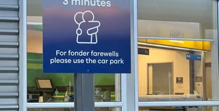 "Для довших прощань, будь ласка, використовуйте парковку", — написано на знаку.