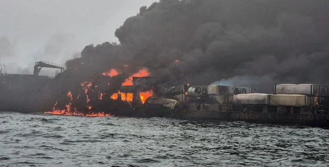 Триває рятувальна операція, поки обидва судна горять. Невідомо скільки людей залишилося на борту.