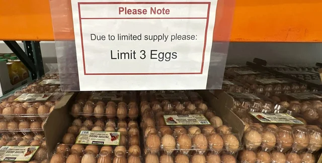Оптові ціни на яйця в США б'ють рекорди, оскільки прискорений спалах пташиного грипу у курей-несучок скорочує поставки. Загалом у США було забито 35 млн курей-несучок. Трамп обіцяв знизити ціни на яйця у свій перший день на посаді, але ціни зросли на 59% у лютому.