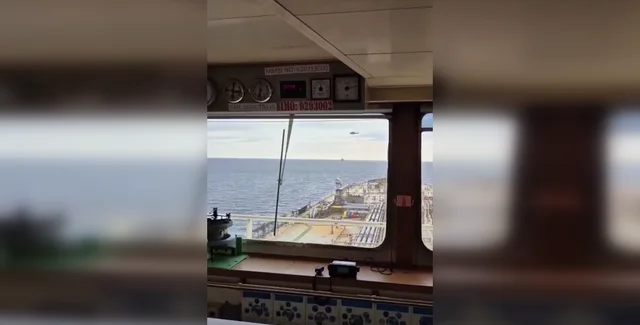 У вікно рубки на відео можна побачити гелікоптер і літаки над судном, а також катер, що наближався до борту.