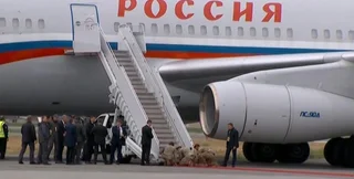 Американські солдати стелять червону доріжку біля російського літака | Фото: Скріншот