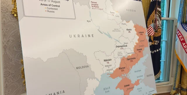 Він вважає, що карта — це холодне нагадування для української делегації про поточний стан справ у майже чотирирічній війні з Росією. І карту спеціально принесли, щоб Трамп наочно міг посилити тиск на Зеленського, щоб той обміняв територію на мир тепер, коли присутні представники ЗМІ вийшли з Овального кабінету.