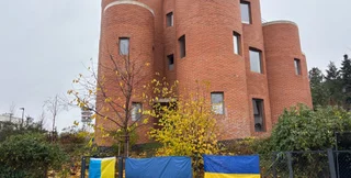 Прапори України на паркані та намальовані фарбою на прилеглій території з'явилися біля будинку спікера Палати депутатів Чеської Республіки Томіо Окамури на вулиці Над Тейнкой у празькому районі Бржевнов.
