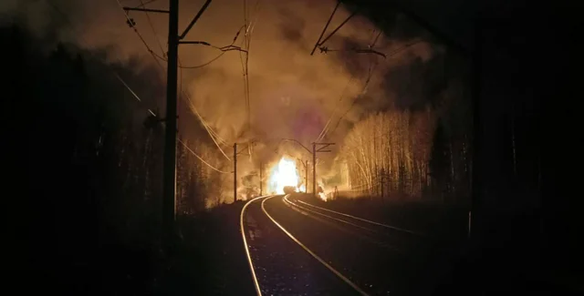 Заграву видно за кілометри: у Свердловській області РФ раптово загорівся поїзд із мазутом (відео)