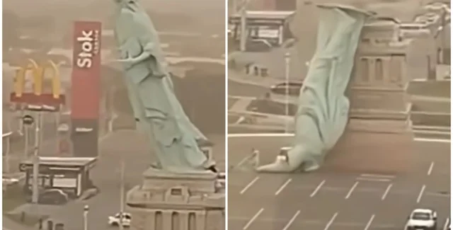 Біля одного з мережевих магазинів у Бразилії копія Статуї Свободи впала через сильний вітер, що вирував у південному регіоні країни. Момент падіння потрапив на відео.