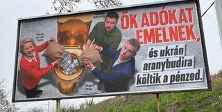 На білбордах зображено президентку Єврокомісії Урсулу фон дер Ляєн, Володимира Зеленського й угорського політика Петера Мадяра, які викидають гроші в золотий унітаз. На білборді написано: "Вони підіймають податки та витрачають ваші гроші на українські золоті унітази". Цікаво, що Петер Мадяр, який є опонентом Віктора Орбана, сфотографувався біля білборда і опублікував фото в Х.