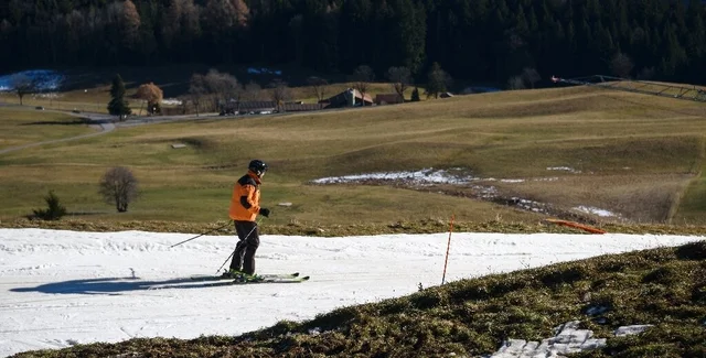На схилах деяких європейських центрів зимових видів спорту, включно з Північними Альпами і Тіролем в Австрії, можна побачити ділянки трави, каміння і землі. Тож лижникам доводиться підніматися вище в гори.