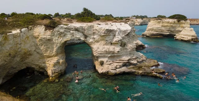 Фаральоні-ді-Сант-Андреа, місце розташування арки в кам'яних скелях на узбережжі Саленто — "підборіддя" італійського "чобота" — століттями приваблювало романтично налаштованих відвідувачів, де закохані традиційно робили пропозиції руки та серця, крадькома цілувалися або робили фото. Згідно з місцевою легендою, ті, хто цілувався під аркою, були приречені на вічне кохання.