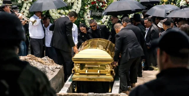 У мережі публікують кадри прощання з убитим наркобароном, якого поховали в труні кольору золота.