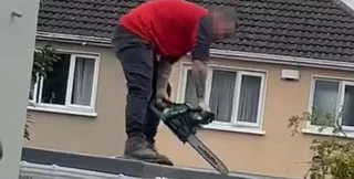 Чоловіка помітили з бензопилою на даху прибудови, за яку його клієнт нібито відмовився платити. Люди в місті Суордс (Дублін, Ірландія) не повірили своїм очам, побачивши, що майстер вирішив поквитатися з власниками будинку. Доведений до межі, будівельник забрався на дах і запустив інструмент.