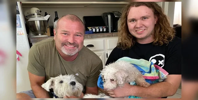 15-річний пес на прізвисько Міньйон зник ще 2011 року після того, як ремонтник залишив відчиненими задні ворота двору. Сім'я була рада знову побачити свого домашнього улюбленця.