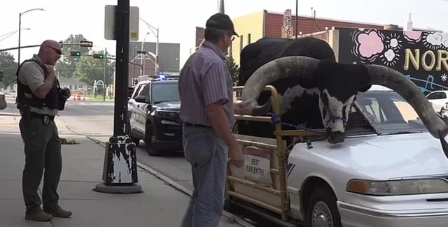 Поліція штату Небраска розповіла про зіткнення з незвичним легковиком, який було переобладнано таким чином, щоб бик породи ватуссі міг їхати "сидячи поруч із водієм".