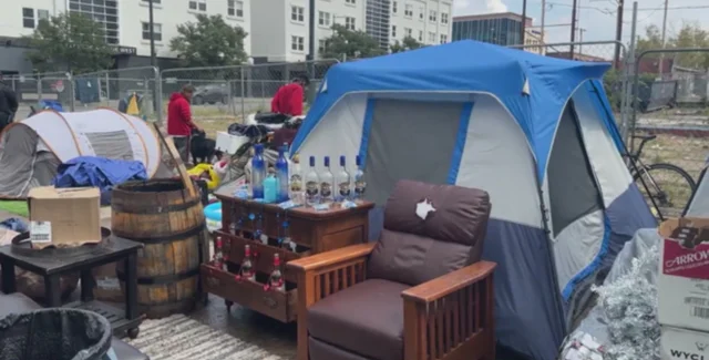 Аарон Санчес, співробітники поліції міста й інші представники міської влади відвідали табір у понеділок після того, як надійшло безліч скарг на те, що новий бар загороджує тротуар і заважає проходу пішоходів. У тіні стояли великі парасольки, а під час візиту телеканалу CBS News Colorado було видно десятки порожніх пляшок з-під спиртного.