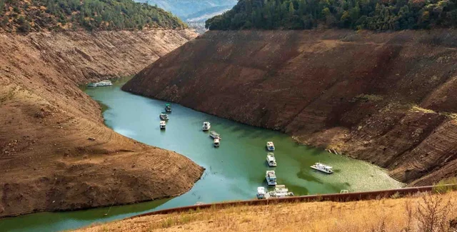 Озера Шаста та Оровілл, два найбільших водосховища штату, заповнені на 86%, згідно з даними, зібраними газетою Los Angeles Times. Це значно більше, ніж наприкінці минулого року, коли вони були заповнені лише на 35%. Якщо ці цифри не достатньо шокують, то фотографії показують ситуацію куди краще. На знімку нижче показано озеро Оровілл у вересні 2021 року, видно, що воно перетворилося на суху долину.