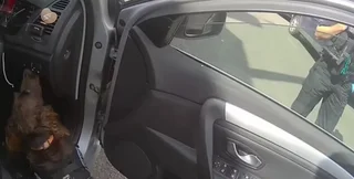 Перш ніж заарештувати наркоторговця розшуковому собаці наказали обшукати його сріблясту Renault Laguna. На відео можна побачити, як пес неодноразово нюхає кермо після арешту підозрюваного.