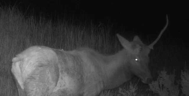 Тварина, яку спіймали на камеру спостереження вночі, очевидно, втратила один зі своїх рогів.