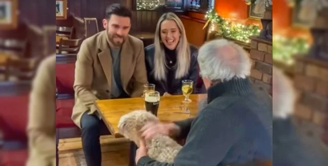 Уже біля будівлі бару він зустрічає молоду пару з собакою. Вони жестом запросили літнього чоловіка увійти першим. Він сів за столик і почав пити пиво, як раптом собака молодої пари почав з ним гратися, а потім і зовсім сів поруч. Це дуже сподобалося відвідувачам і вони підсіли до старого. Так самотній чоловік провів затишний вечір із новими знайомствами.