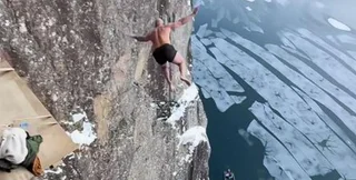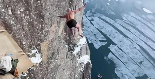 Світовий рекорд: норвежець стрибнув зі скелі заввишки 40,5 метрів у крижану воду (відео)