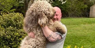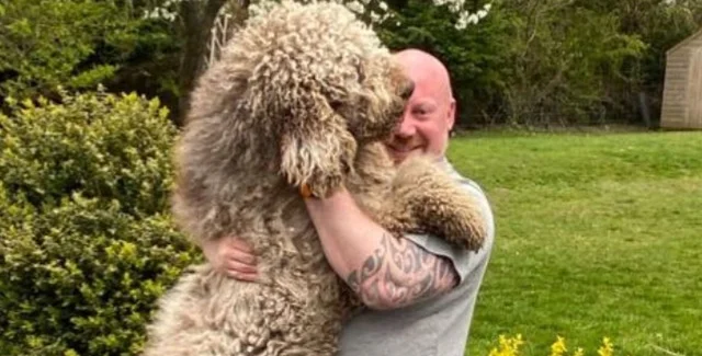 Величезний ньюфаундлендський пудель на прізвисько Роульф все ще намагається застрибнути на коліна свого господаря Крейга з Турстастона (Уельс), попри те що важить майже 45 кг.