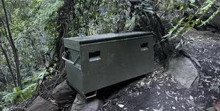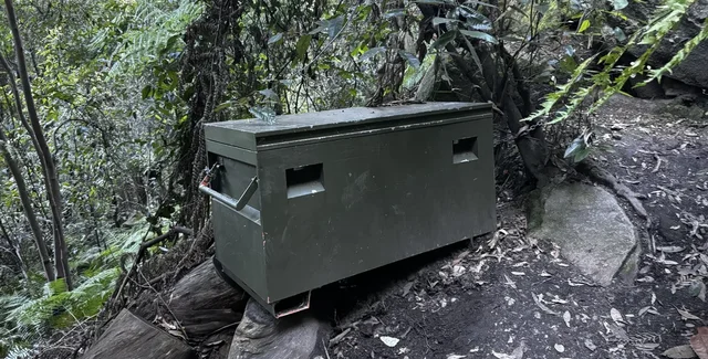Коробка, яку допитливий австралієць виявив на початку пішохідної стежки в Катумбі, захована в зеленому камуфляжі, ідеально поєднуючись із деревами та навколишніми чагарниками, розташованими в глибині долини Джемісон.