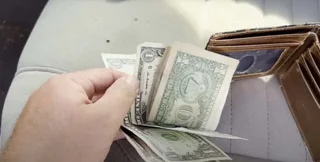 "Не може бути, невже це гаманець? Гаразд, тепер момент істини щодо того, скільки тут грошей. Це бентежить. О, тут лише одні… У нас є 15 доларів. Зовсім непогано", — сказав він, показавши гаманець на камеру.