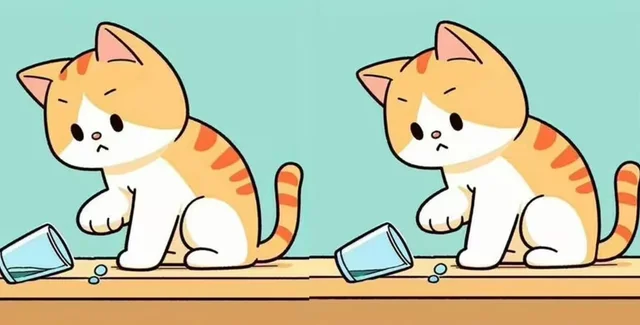 У цій головоломці людям необхідно знайти три відмінності між фотографіями кота менш ніж за 10 секунд. На картинках зображена домашня тварина, що грається зі склянкою води. Між ними є три відмінності, які вимагають уважного спостереження.